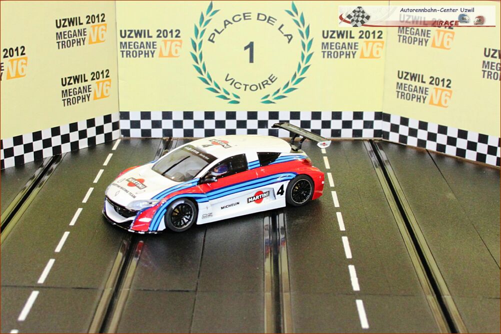 Der rennlauf der spitzengruppe versprach einiges an spannung,waren doch Hans, Benno, Sven und Jommeri Nöbi nachdem Qualifying in 3/10 beisammen. Zudem zeigte nöbi mit seiner Qualifying- zeit von 10.0 das heute mit ihm zu rechnen ist.kaum sprang die Ampel auf grün ging auch schon los. Keiner schenkte dem andern was und demensprechend liess der erste Abflug nicht lange auf sich warten. Im Eifer des gefechts legte sich Hans über die bahn um seine Cola dose zu bergen und das Geschrei ging los. Nach der hektischen startphase beruhigte sich das Rennen und Sven vermochte sich, verfolgt von nöbi abzusetzen. So hatte er nach turns einen Vorsprung von einer Runde auf nöbi,zwei runden auf Benno und hans. Zwischendurch gab noch hans schnelle cola dose den Geist auf und hans war gezwungen, sonjas auto zu nehmen. Sonja, staunte nicht schlecht, zu was für Zeiten ihr Auto fähig ist.nöbi aber gab sich noch nicht geschlagen und jagte sven mit dem Messer zwischen den Zähnen in einige abflüge. Sven kämpfte tapfer doch nach dem 3. Turn führte nöbi mit ca. 30 cm Vorsprung. So ging es in den letzen turn, nöbi und Sven 2 runden vor hans und benno. Die 2 verfolger hatten aber die innenbahnen, was bedeutete, das man sie noch nicht abzuschreiben konnte. Es ging hart auf hart zur Sache Sven jagte jetzt nöbi un d hatte ihn schon in griffnähe als sich das Heck des Lucky stricke befeuerten meganes verabschiedete und er nöbi ziehen lassen musste. Doch jetzt hiess es für Sven, aufpassen, den benno nahte mit riesenschritten und bedrohte svens 2. Platz. Doch für einmal sollte das glück auf svens seite sein, flog doch benno kurz vor schluss noch ab und vergab seine chance auf den 2. Platz. Auch hans fehlte die Konstanz seiner Cola und er musste sich das treppchen für heute abschminken. So siegte der Qualifying-winner nöbi mit ca einer halben runde vor Sven, dicht gefolgt von benno. Es ist bis jetzt in der megane- rennserie wie beim Formel1,